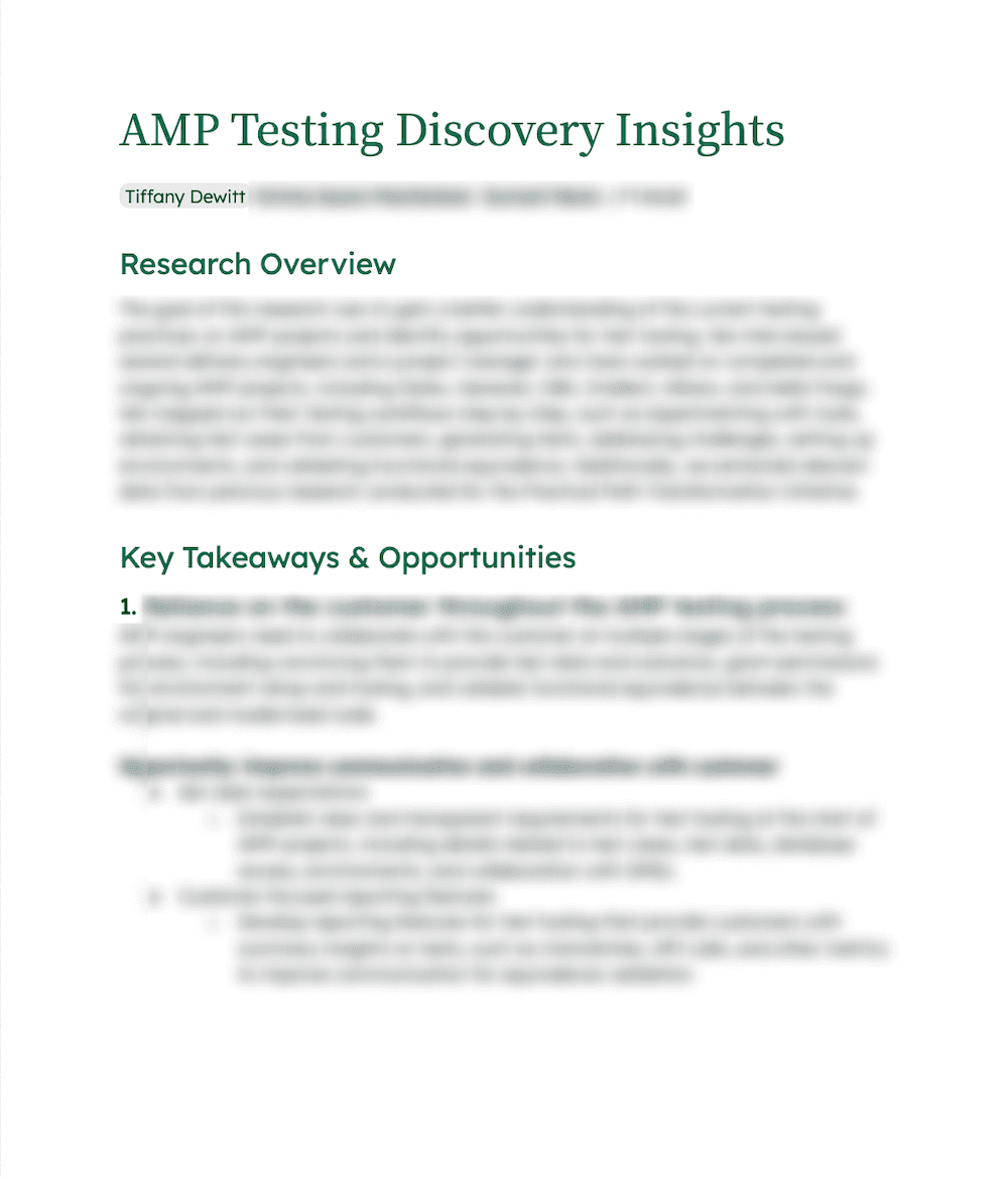 Using AI helped me quickly get some context around testing on AMP and answer some questions we had. This way I could prepare richer, more informed questions for primary research.